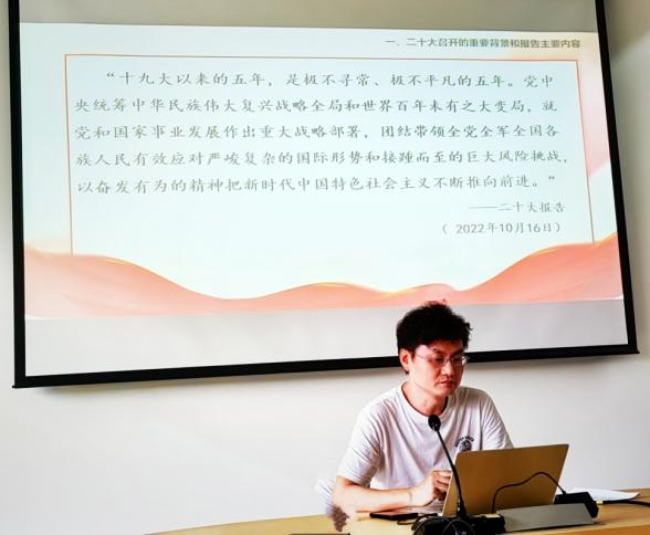 踔厉奋发新征程,笃行不怠勇争先,5月17日下午,马克思主义学院党支部在1-602会议室开展本月第一议题学习,副院长周文恩主持,思政教研室黄小波博士主讲。