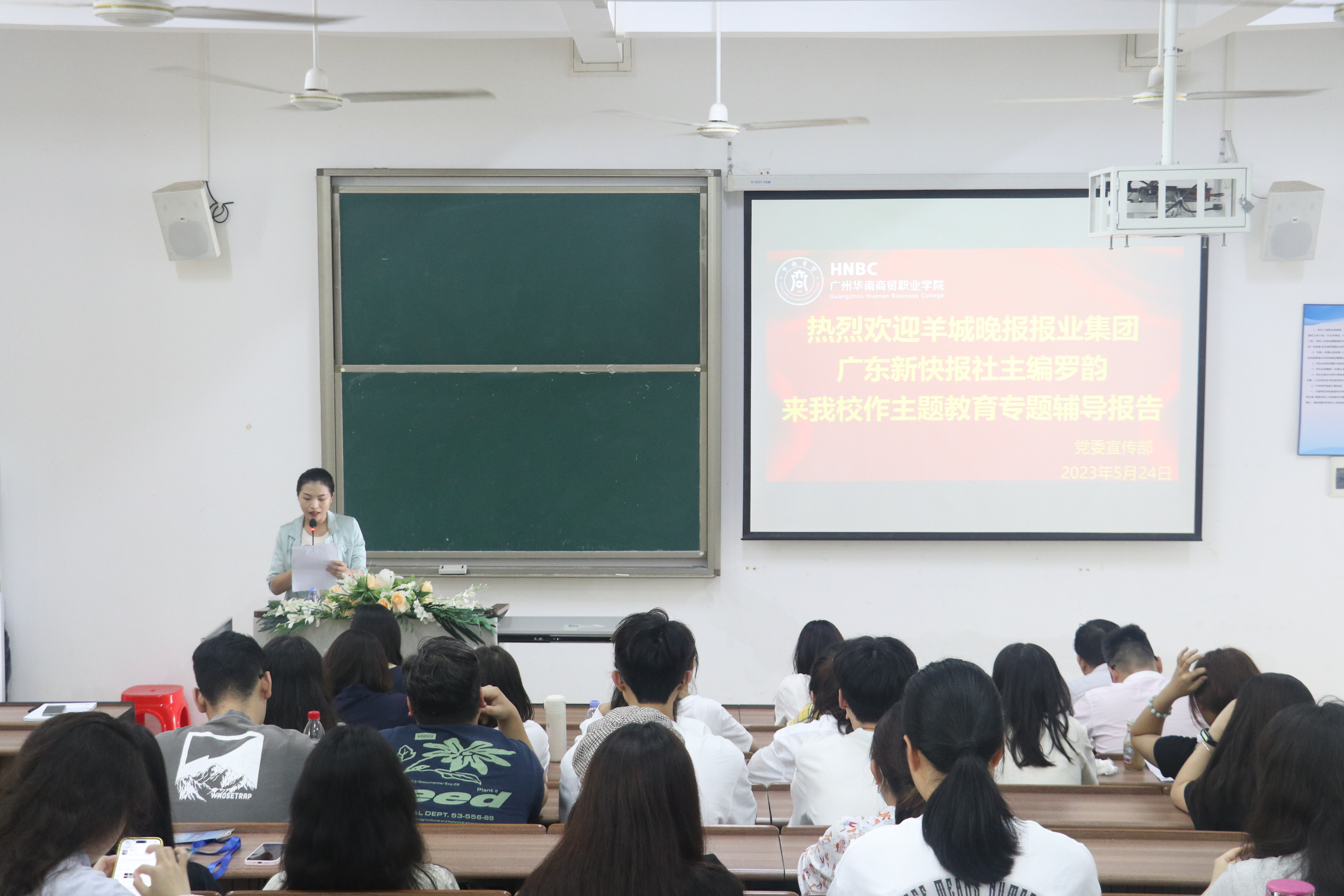 为深入学习贯彻习近平新时代中国特色社会主义思想,突出宣传引领作用,多措并举、多点发力,全力营造主题教育浓厚氛围,5月24日,我校举行学习贯彻习近平新时代中国特色社会主义思想主题教育专家讲学第四讲,特邀羊城晚报报业集团、广东新快报社主编罗韵作专题辅导。学校领导、党委宣传部、各学院宣传干事、师生党员代表等参加了会议。会议由党委组织部曹芳玲老师主持。