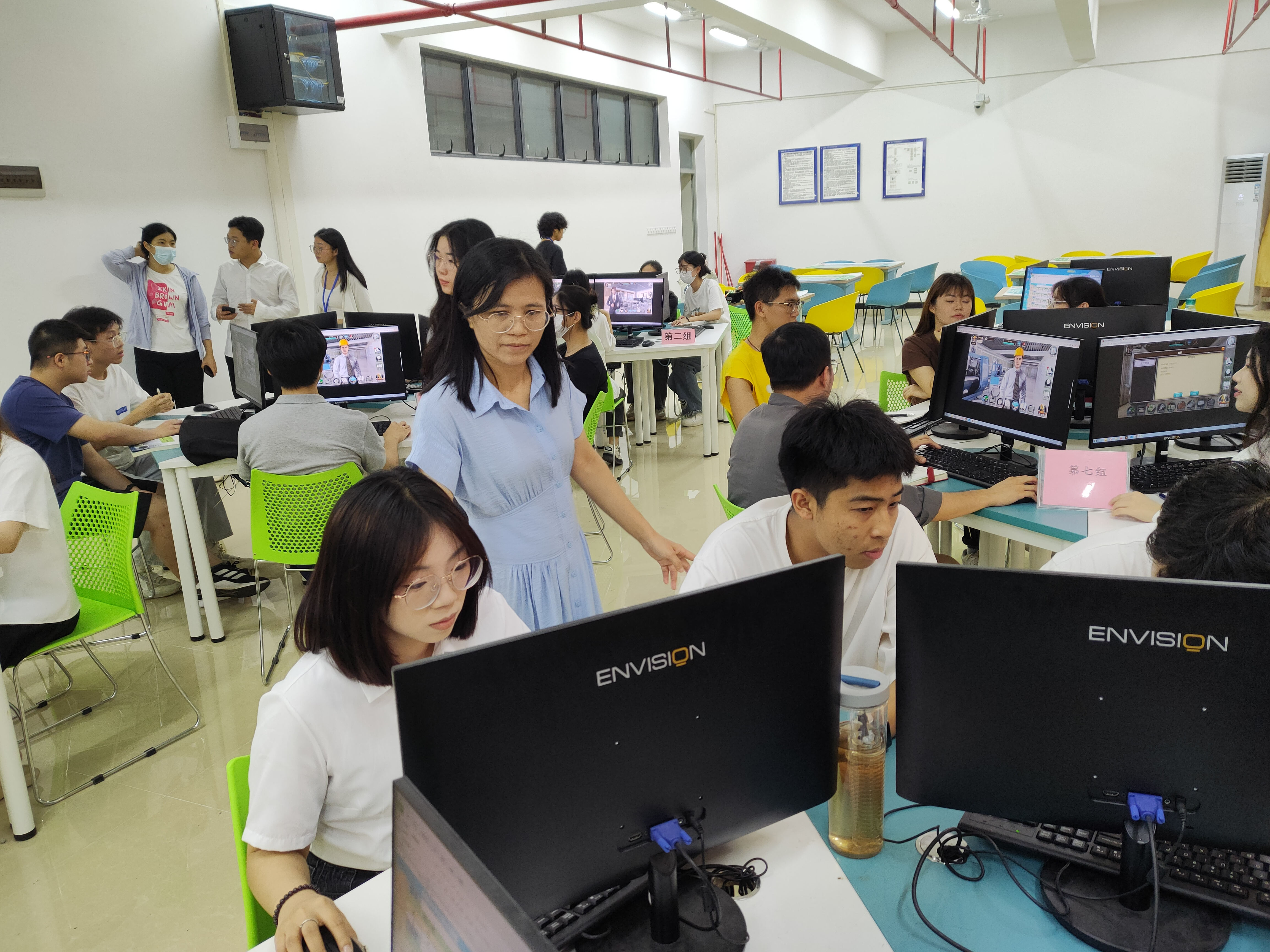 比赛共有8支队伍参加,每组5人,以生产型企业为背景,以约创电子沙盘软件为操作平台,每支队伍成立模拟公司团队,在规定时间内完成公司内部的产品研发、市场开发、原料采购、生产组织、产品销售等环节。比赛期间,校院领导、指导老师在活动现场密切关注参赛选手们的比赛情况,鼓励选手们沉着应对比赛。