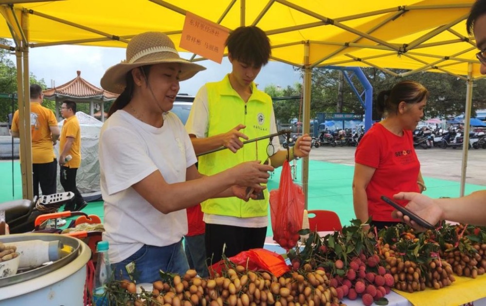 “星火”突击队成员们各司其职,有的热情地向游客介绍产品,协助村民们销售黄皮果;有的穿梭在人群中,维护现场秩序,确保每位游客安全、愉快地享受“黄皮节”盛宴。