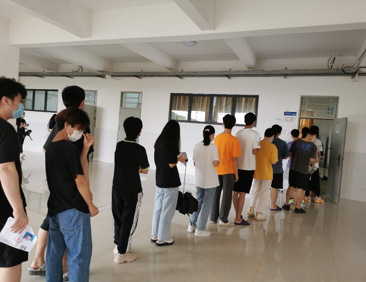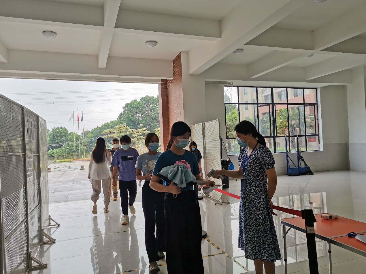 考试当天,在考点入口考务人员对考试学生、监考员进行了严格的入场检查,测量体温,各考场入口监考员查看考生准考证、身份证、学生证,既按要求做好各项考生核验工作,又做好考试服务保障。