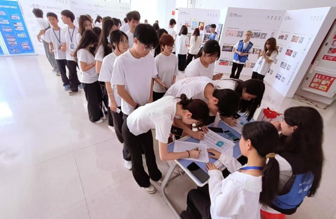 5月14日,师生们参观融媒体中心及网络文明志愿者先锋队一周年成果展。