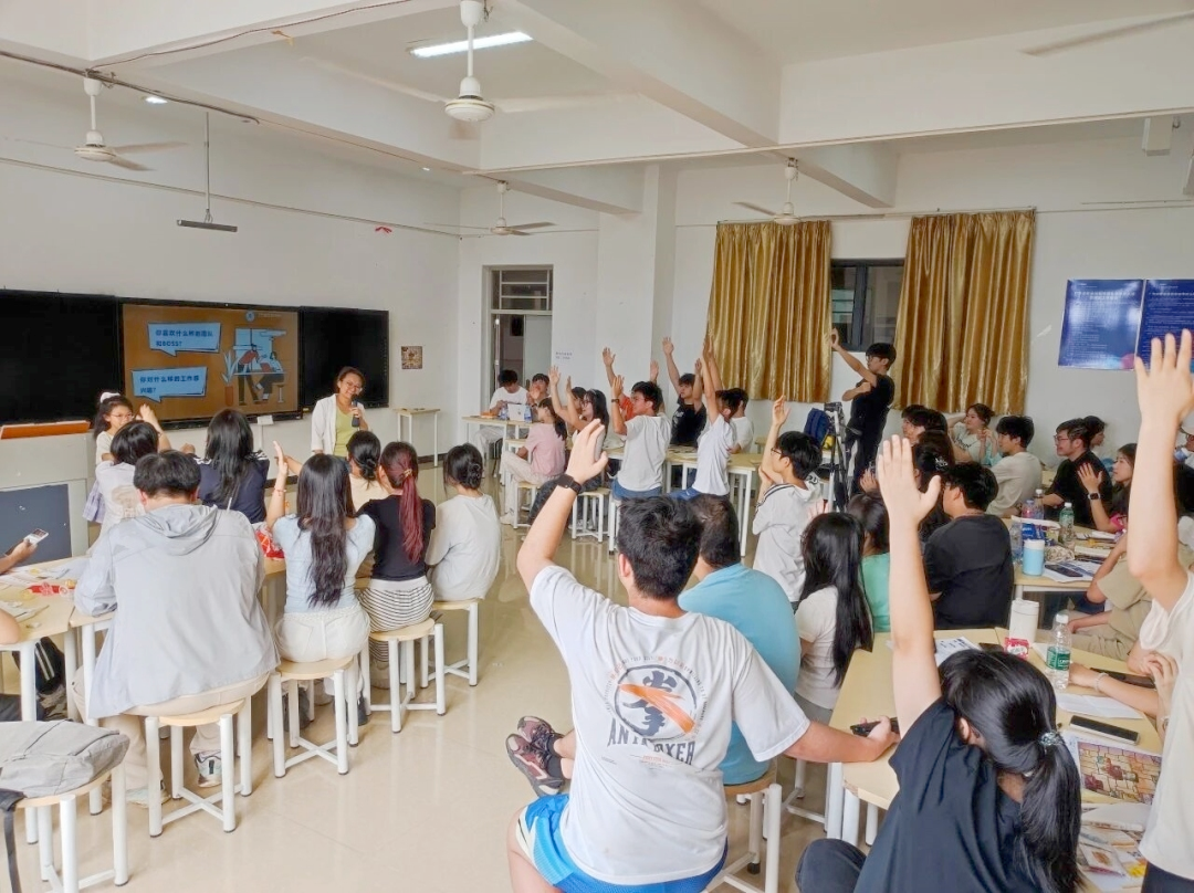 秋风送爽,军绿盎然。10月20日上午,广州华南商贸职业学院(以下简称:华南商贸)教学楼广场上呈现一派崭新的气象:以往队列严整的军训场,临时变成了一方开放、亲切的思政课堂。在“青春启航·强国有我”2025级新生“思政第一课”中,华南商贸党委书记王书汉、校长曹文文分赴4号教学楼、1号教学楼前广场,走进学生中间,与约150名席地而坐的军训新生代表围成一圈,展开了一场别开生面的零距离对话。