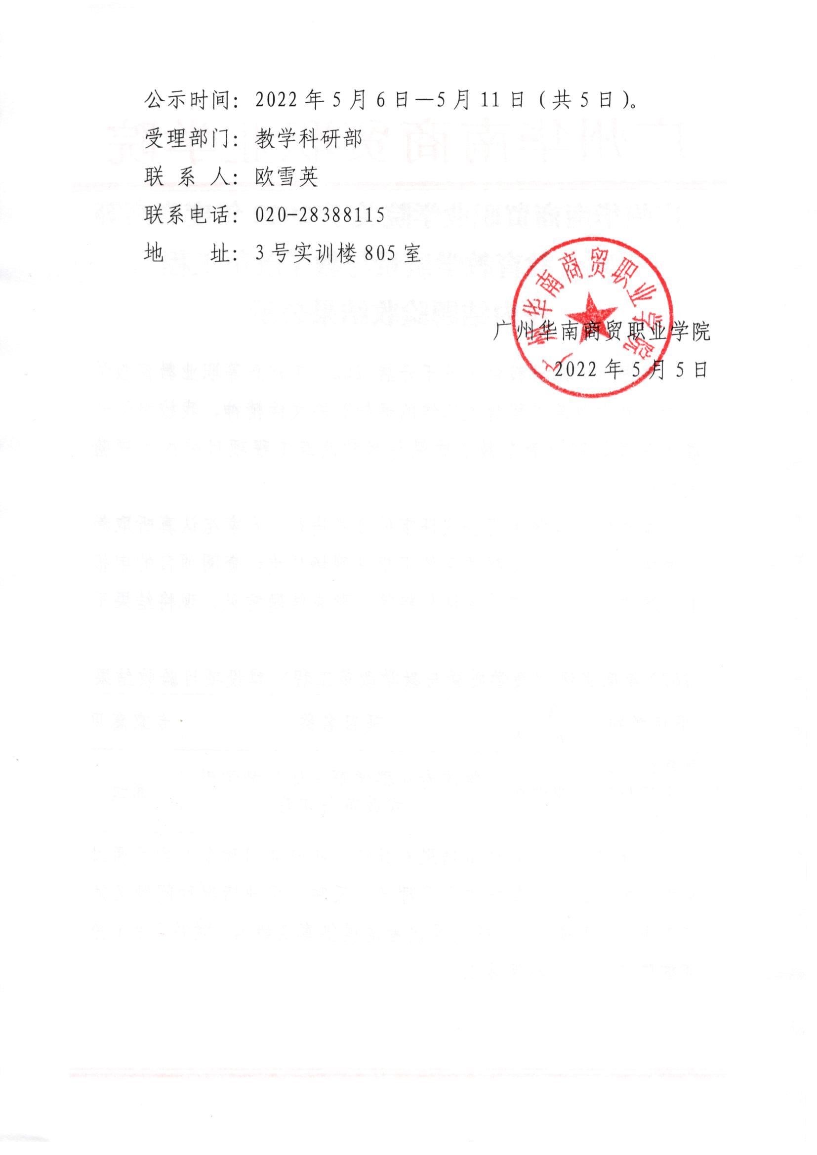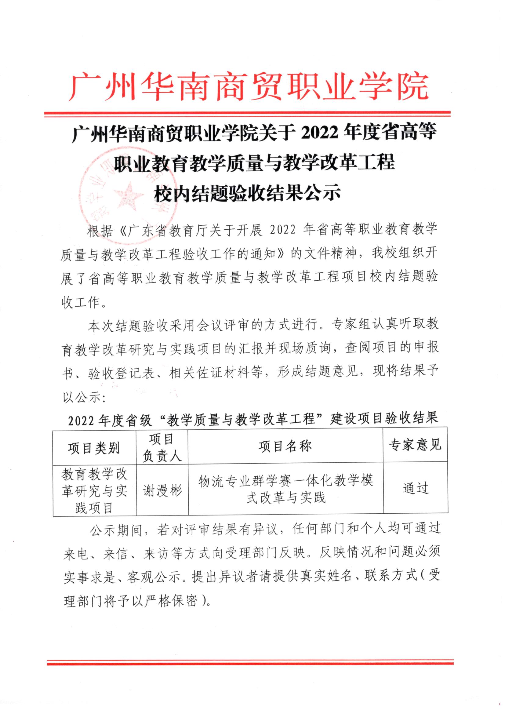 广州华南商贸职业学院关于2022年度省级“教学质量与教学改革工程”建设项目校内结题验收结果公示