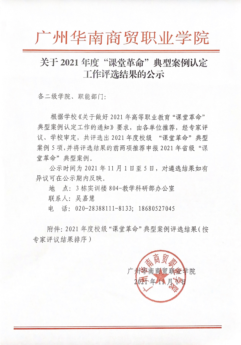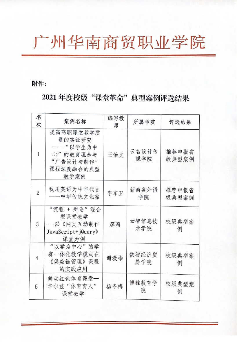 关于2021年度“课堂革命”典型案例认定工作评选结果的公示