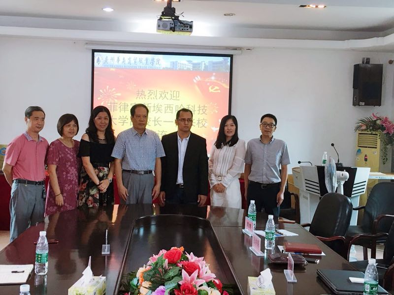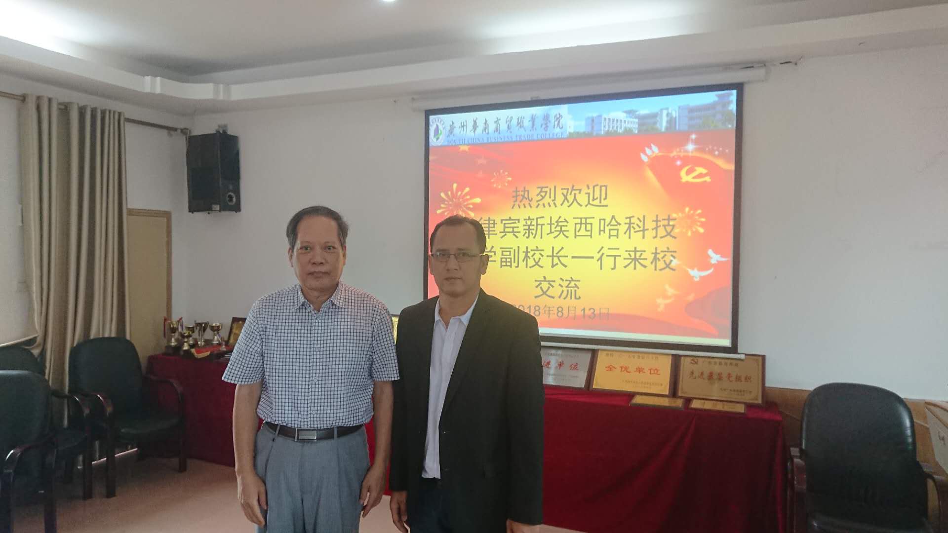 首先,黄院长向Jimmy副校长一行来访表示热烈欢迎,非常高兴在学院步入转型发展的新时期迎来菲律宾客人;随后介绍了我院的办学历史、人才培养特色等基本情况,重点介绍了即将于9月份投入使用的白云校区和学院并入南博集团后的发展规划。Jimmy副校长对黄院长的热情接待表示诚挚感谢,非常乐意和广州华南商贸职业学院建立交流和合作关系。他简要介绍了新埃西哈大学的历史和现状以及在菲律宾的地位,希望双方在合作办学方面取得成效。