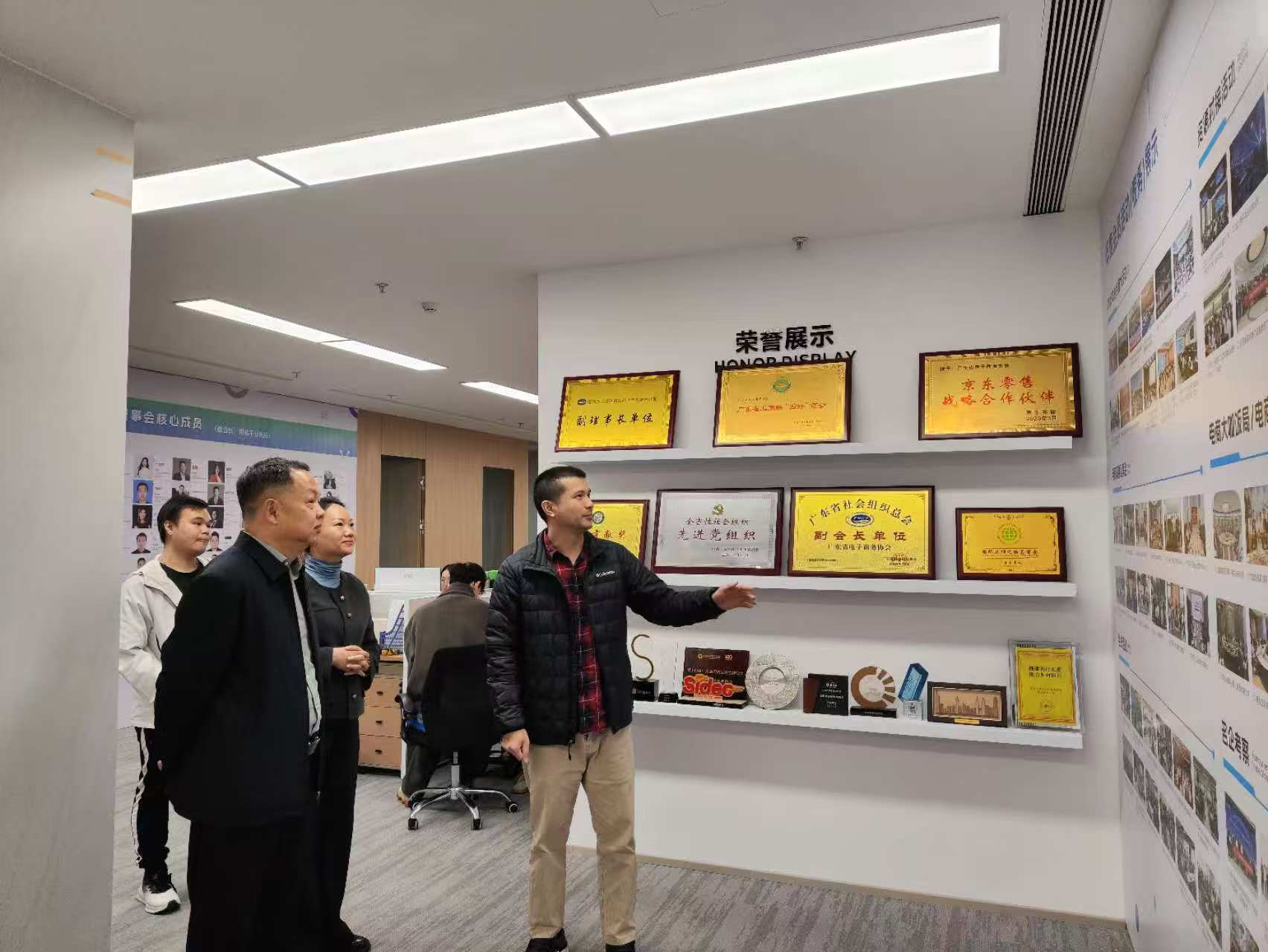 华贸讯:为深化产教融合、加强校企合作,推动电子商务人才培养与行业需求精准对接,2025年12月,我校校长曹文文、就业与校企合作办主任付立阳、经济管理学院副院长肖洁一行赴广东省电子商务协会参观交流。在协会副秘书长刘世昌的陪同下,校领导一行参观了协会展厅,详细了解了广东省电子商务协会的发展历程、组织架构、服务职能及在推动行业标准化、促进企业数字化转型等方面取得的成果。刘世昌还系统介绍了协会在政策对接、行业研究、资源整合、人才培养等方面开展的工作,并重点阐述了当前电商行业发展趋势及对高素质技术技能人才的需求。