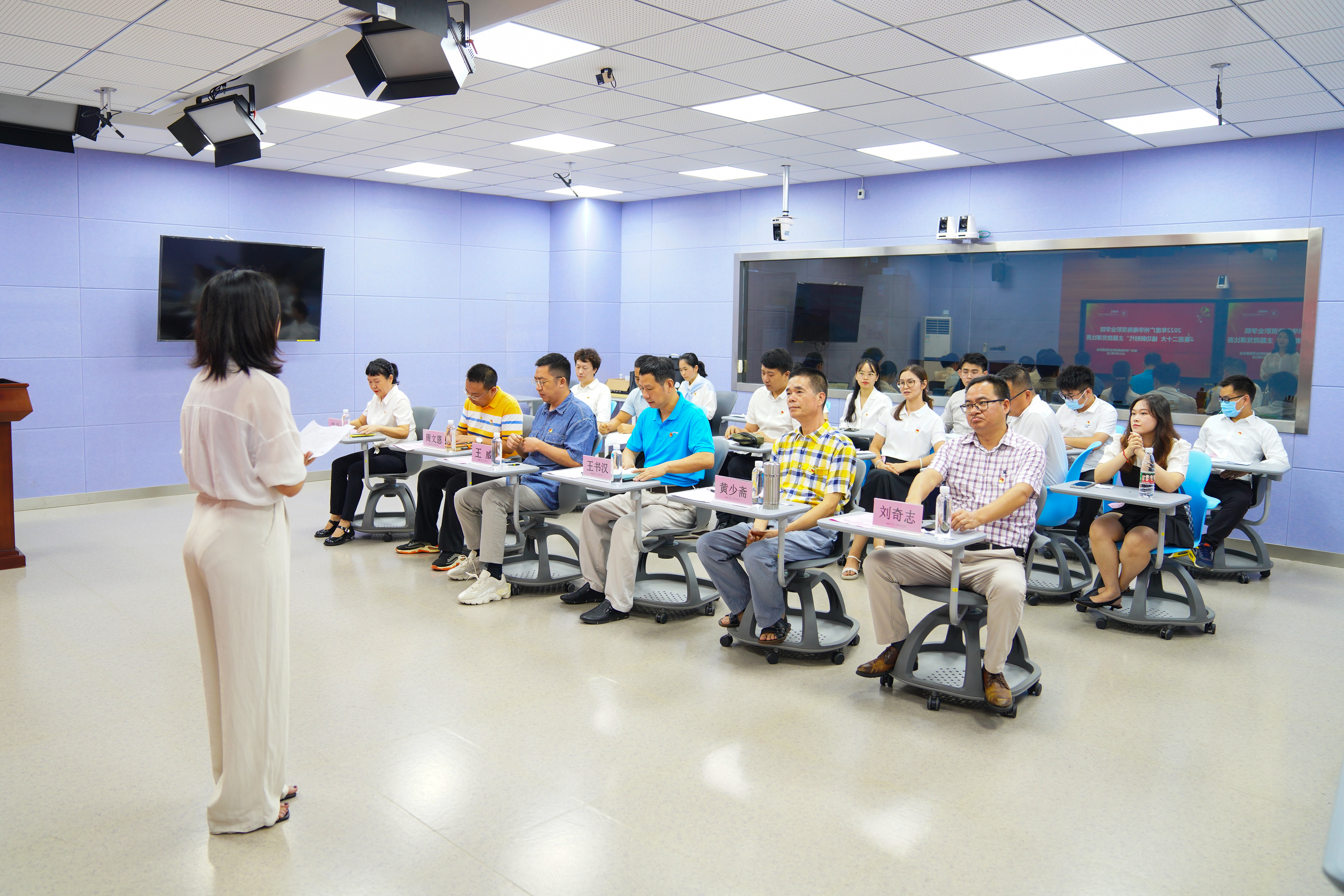 为深入贯彻落实习近平新时代中国特色社会主义思想,激发师生党员奋进新时代的磅礴力量,推进党史学习教育常态化、长效化,进一步让党课“活”起来,丰富党课的实用性、多样性、创新性,营造喜迎二十大的浓厚氛围,9月1日晚,学校党委组织部在教学楼1-215录播室组织开展了“喜迎二十大,建功新时代”微党课比赛,党委书记王书汉出席大赛并讲话。党委相关职能部门负责人参加比赛并担任大赛评委,大赛由组织部曹芳玲同志主持。