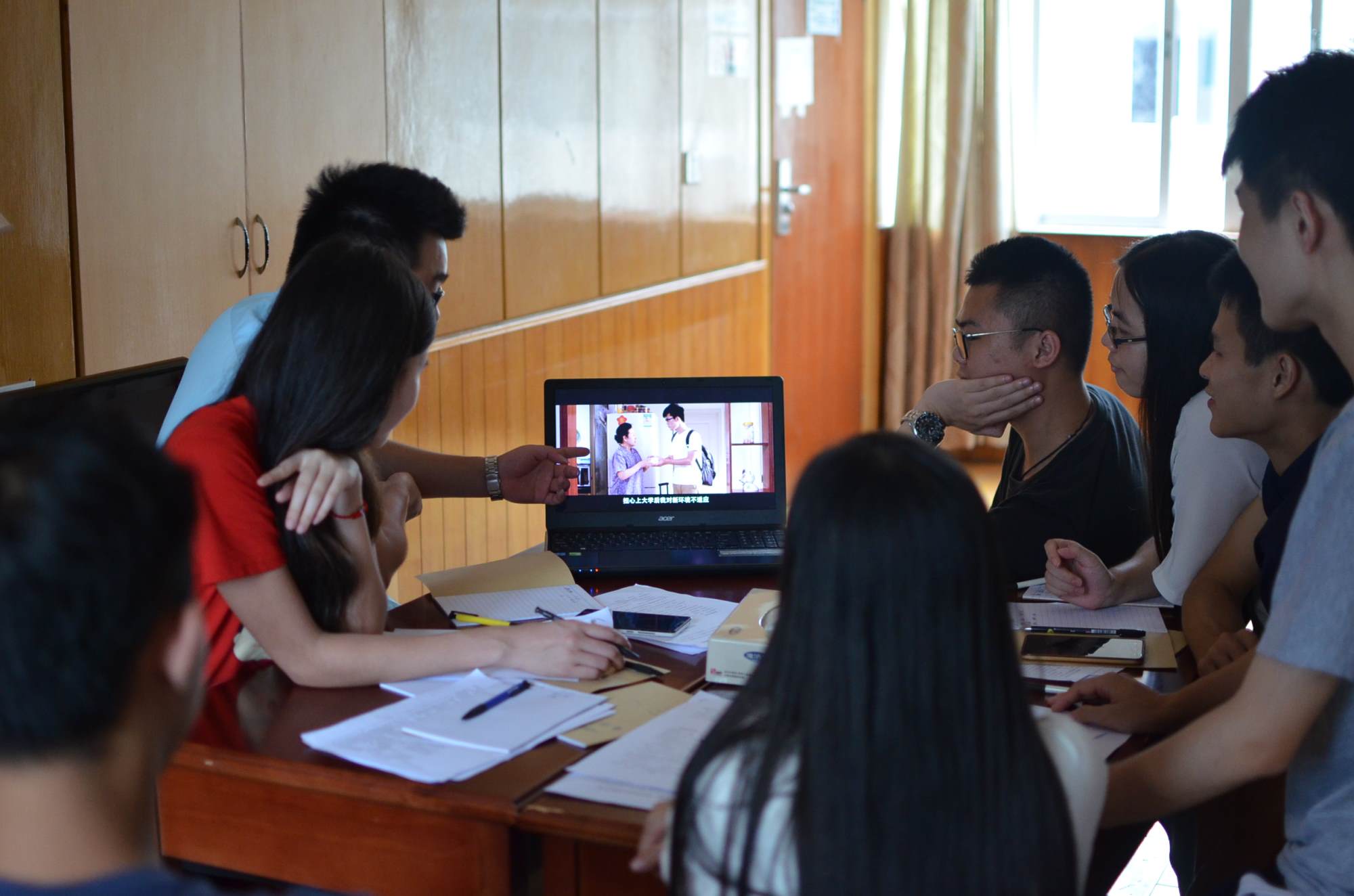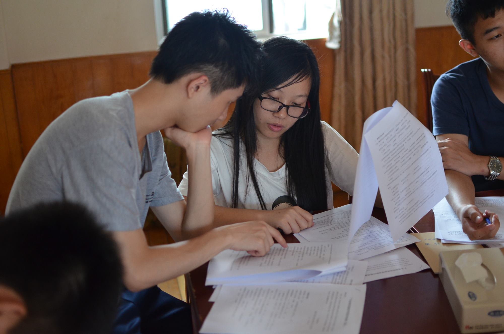 随后,队员们迈着坚定的步伐,带着齐全的物资,以饱满的热情登上校车,奔向此次活动的宣传目的地五华县转水镇。经过四个多小时的车程,终于到达目的地。队员们到达驻地后马上进入工作状态,大家开始整理物资,做好前期准备。带队老师曾燕锋、钟法声布置第二天工作计划,队员们认真做笔记,讨论相关活动事宜。当天下午,当地政府热情接待了队员们,并表示愿意积极配合国家助学贷款队员们的宣传工作,为服务队员们提供宣传工作所需物资和充当向导。