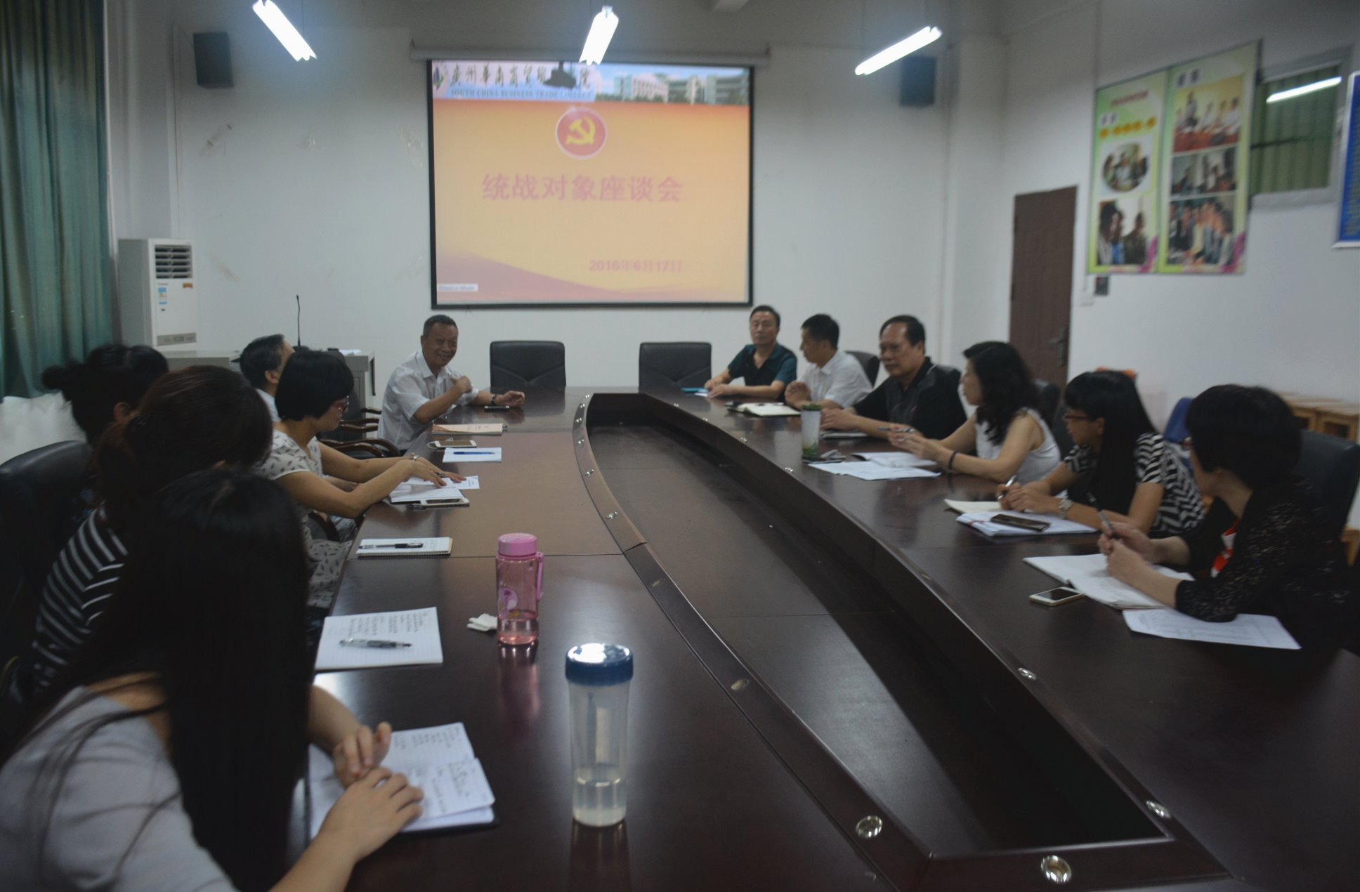 为进一步贯彻落实中央统战工作会议精神,加强新形势下学院统战工作的针对性和有效性,推动学院各项工作的开展,统战部于6月17日上午在实训大楼202召开学院统战工作座谈会,统战对象代表、党委委员及党委主要机构负责人出席了会议,党委书记兼统战部部长宋翎同志主持会议。