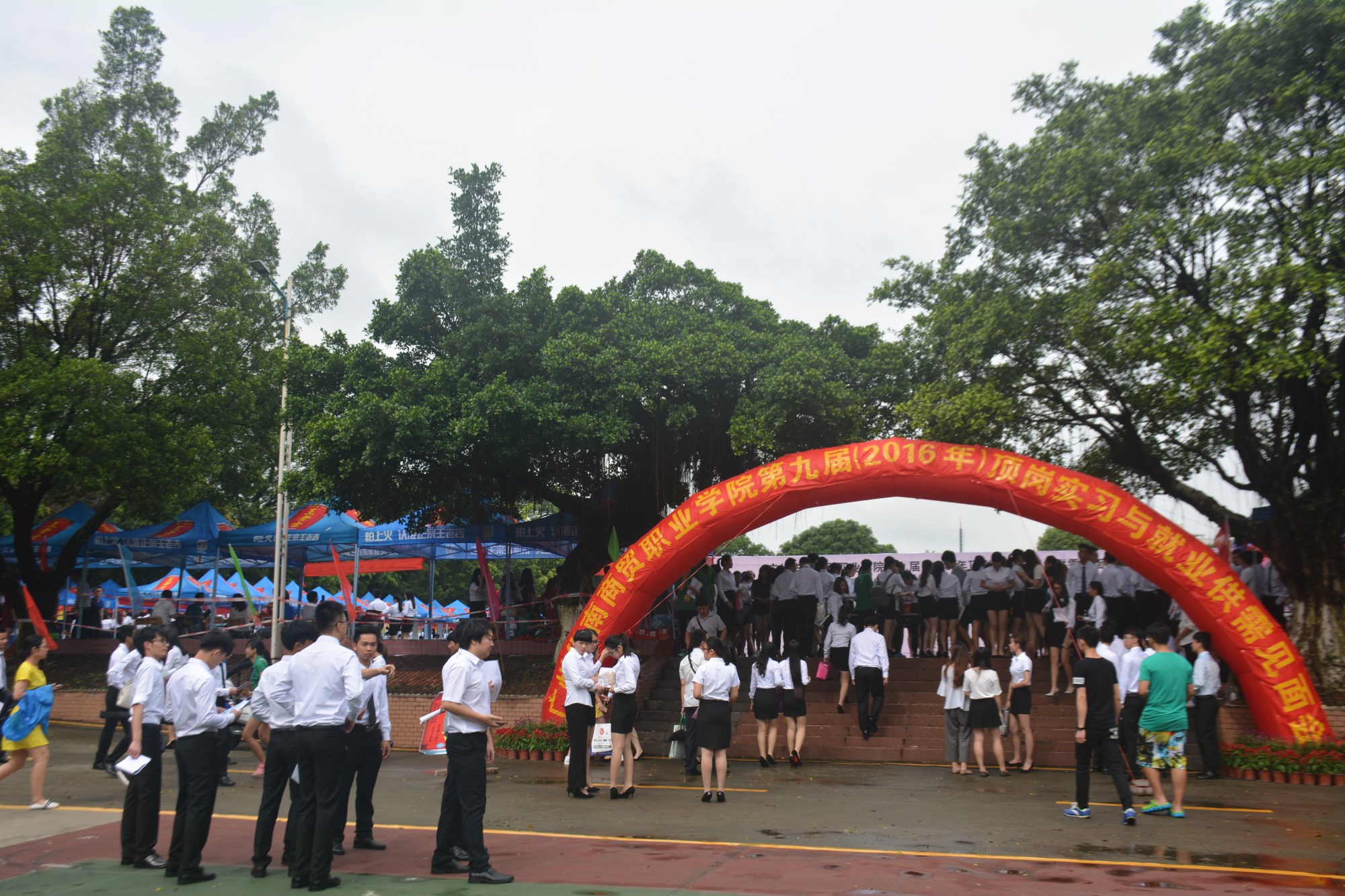 为促进我院2016届毕业生就业和2014级学生实习搭建更广阔的双向选择平台,6月16日上午,我院在学院足球场隆重举办第九届(2016年)顶岗实习与就业供需见面会。本次供需见面会由学院主办,广州市星呈劳务服务有限公司承办,来自省内共130余家企业、280多名企业代表来院招聘人才,本院及兄弟院校近5000名毕业生参与了见面会。