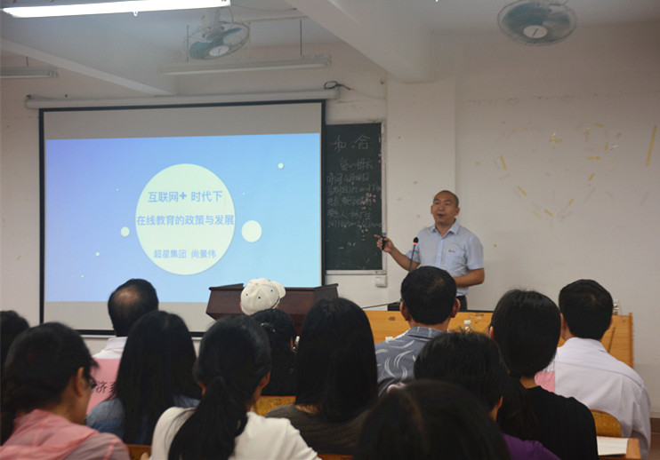 4月21日,我院邀请到了教育信息技术专家、超星尔雅公司副总经理尚景伟先生来我院进行一场题为《“互联网+”时代下 在线教育的政策和发展》的培训讲座。学院领导及全体教师、教学管理人员参加了交流学习。