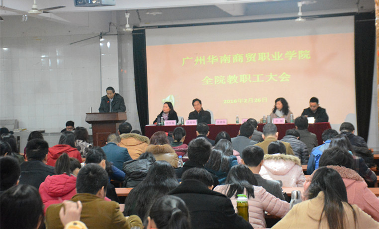 会上,党委宋翎书记概括了我院2015年的教育教学及党建工作等方面取得的成绩,并总结了各项工作的亮点。上一年内我院做了大量的评建工作,进行了教学与行政管理制度汇编及管理办法的整理,推进依法治校;根据区域经济社会发展的需要调整了专业结构,确定申报11个新专业;重视实训基地建设和师资队伍建设;开设创新创业基础课,建立校外创新创业实践基地,着力推进创新创业教育,还有其他一系列举措都为新学期的发展奠定了坚实的基础。